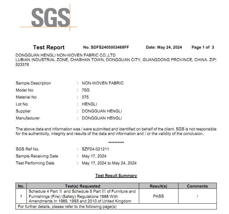• 2024年最新版SGS無紡布英標防火報告 測試評估方法是通過悶燒和直接明火接觸家紡織物。 ...